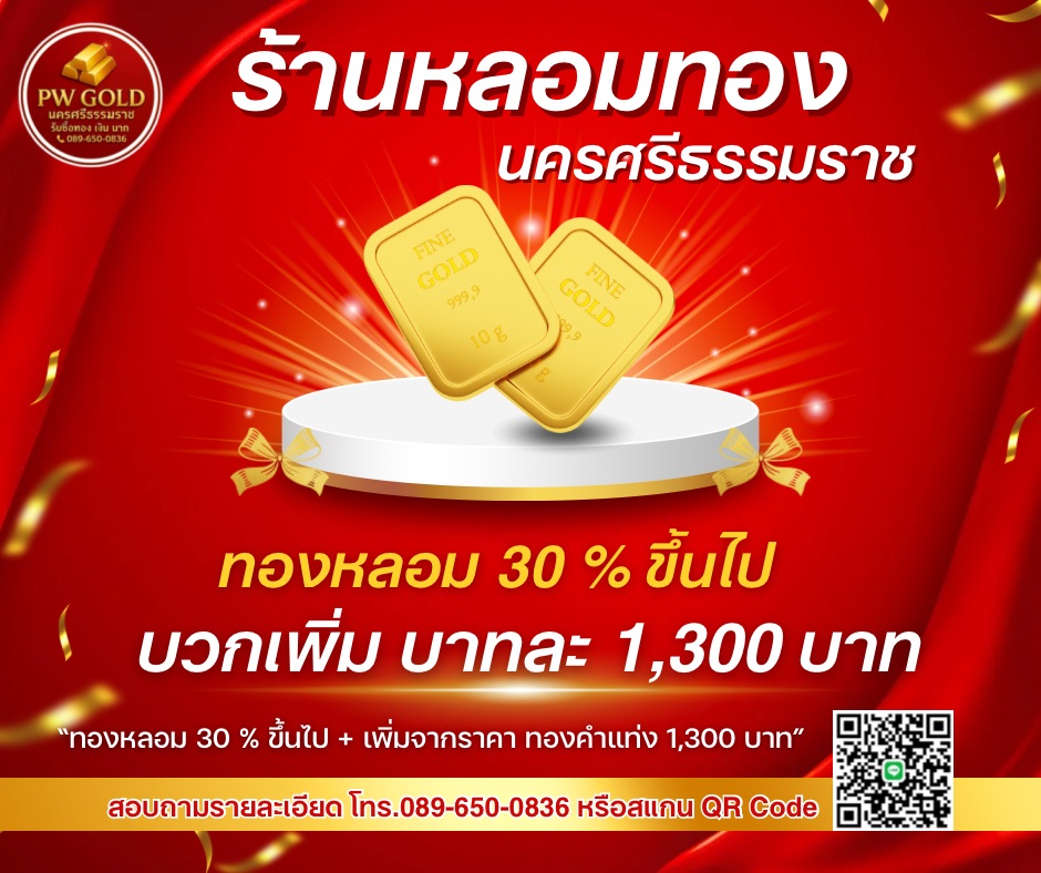 หลอมทอง 30% ขึ้นไป บวกเพิ่ม บาทละ 1,300 บาท